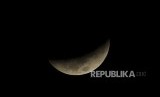 Fase awal fenomena gerhana bulan total terlihat di wilayah Bekasi, Jawa Barat, Sabtu (28/7). (FOTO : Republika/Edwin Dwi Putranto)