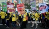 REPUBLIKA.CO.ID, JAKARTA -- Relawan mengikuti parade Kurbanaval Dompet Dhuafa saat berlangsunya Hari Bebas Kendaraan Bermotor (Car Free Day) di Kawasan Bundaran HI, Jakarta, Ahad (29/7).