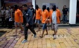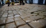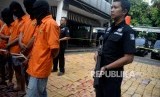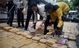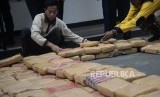 REPUBLIKA.CO.ID, JAKARTA -- Petugas kepolisian Subdit II Psikotropika Ditresnarkoba Polda Metro Jaya menunjukan tersangka dan barang bukti narkotika jenis ganja saat rislis di Polda Metro Jaya, Senin (30/7). Petugas berhasil mengamankan sebanyak 1.434 Kg barang bukti ganja dan 6 orang tersangka.