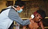 Pendaki Gunung Rinjani yang sempat terjebak longsor akibat gempa bumi menerima perawatan medis setibanya di Pos Bawaknao, Sembalun, Lombok Timur, NTB, Senin (30/7). (FOTO : Antara/Akbar Nugroho Gumay)