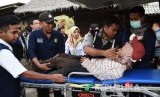 Petugas mengevakuasi pendaki Gunung Rinjani yang sempat terjebak longsor akibat gempa bumi dengan ambulan di Pos Bawaknao, Sembalun, Lombok Timur, NTB, Senin (30/7). (FOTO : Antara/Akbar Nugroho Gumay)