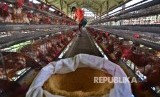 Pekerja memberi pakan kepada ayam petelur di Kampung Cicariang, Tasikmalaya, Jawa Barat, Senin (30/7). Meski harga telur ayam di pasaran naik hingga Rp23.000 per kilogram, namun sejumlah peternak ayam petelur menyatakan tidak merasakan keuntungan karena harga pakan naik dari Rp5.100 menjadi Rp5.600 per kilogram, disertai menurunnya produksi telur ayam akibat perubahan iklim. (FOTO : Adeng Bustomi/Antara)