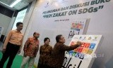 Peluncuran Buku Fikih Zakat on SDGs. Kepala Bappenas Bambang Brodjonegoro membubuhkan tanda tangan di sampul Buku Fikih Zakat on SDGs saat peluncuran di Bappenas, Jakarta, Senin (30/7). Fiqih Zakat on SDGs diharapkan bisa menjadi panduan bagi pengelola zakat dan muzaki dalam menggalang, mengelola dan mendayagunakan zakat untuk mendukung program-program terkait SDGs. (FOTO : Wihdan Hidayat/Antara)