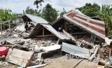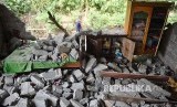 Foto kerusakan bangunan akibat gempa bumi di Desa Sajang, Lombok Timur, NTB, Senin (30/7). Gempa bumi berkekuatan 6,4 pada skala richter Minggu (29/7) kemarin telah mengakibatkan korban 15 orang meninggal dunia, 162 orang luka-luka serta ratusan rumah rusak. (FOTO : Akbar Nugroho Gumay/Antara)