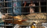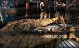 Barang bukti seekor buaya muara yang diperlihatkan saat rilis pengungkapan jaringan perdagangan satwa liar antar daerah secara daring di polres Jakarta Barat, Jakarta, Selasa (31/7). (FOTO : Republika/Mahmud Muhyidin)