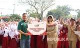 GM Corporate Affairs Giant Tony Mampuk, menyerahkan bantuan di sela kegiatan SOBAT GENIUS di SDN Satria Jaya 03 Wisma Asri BekasiI, Selasa, (31/7). Program SOBAT GENIUS (Sekolah Hebat: Gesit, Empati, Berani, Unggul, dan Sehat) adalah merupakan rangkaian salah satu program sosial Giant yang berfokus pada pemberian edukasi dan inspirasi. (FOTO : Dok Giant)