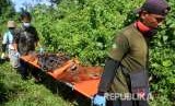 Petugas Yayasan Ekosistem Lestari-Sumatran Orangutan Conservation Programme (YEL-SOCP) dan BKSDA Aceh mengevakuasi orangutan sumatra (Pongo abelii) di Desa Geulagang Gajah, Kuala Bate, Aceh Barat Daya, Aceh, Jumat (3/8). (FOTO : Antara/Syifa Yulinnas)