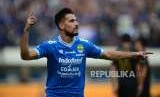 Sleebrasi striker Persib Jonathan Bauman setelah mencetak gol pertama pada pertadingan Gojek Liga1 2018 di Stadion Gelora Bandung Lautan Api (GBLA) di Bandung, Sabtu (4/7). (FOTO : Republika )