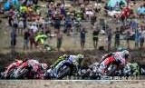Iring-iringan rider dipimpin Andrea Dovizioso melintasii Masaryk Circuit, Brno. (FOTO : EPA-EFE)