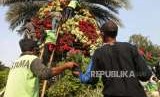 REPUBLIKA.CO.ID, JAKARTA -- Pekerja Dinas Kehutanan Provinsi DKI Jakarta memasang tumbuhan di taman vertikal di Kawasan Jalan Medan Merdeka Selatan, Jakarta, Senin (6/8).