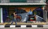 REPUBLIKA.CO.ID, JAKARTA -- Lukisan Mural dengan tema Jakarta Tempo Doeloe menghiasi dinding pemukiman di Kampung Tematik Sketsa di Kawasan Penjaringan, Kota Tua, Jakarta, Senin (6/8).