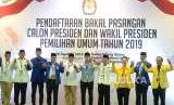 REPUBLIKA.CO.ID, JAKARTA -- Pasangan bakal capres-cawapres Prabowo Subianto-Sandiaga Salahudin Uno, resmi menyerahkan berkas pendaftaran sebagai peserta Pemilu 2019, Jumat (10/8) siang. Sejumlah politikus ikut datang mendampingi pendaftaran keduanya.