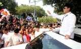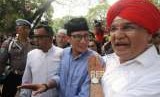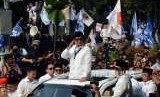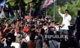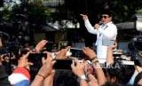REPUBLIKA.CO.ID, JAKARTA -- Calon Presiden Prabowo Subianto menyapa pendukungnya saat mendaftarkan diri sebagai calon presiden 2019 di Gedung KPU, Jakarta, Jumat (10/8).