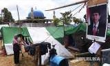 Pengungsi korban gempa bumi menjemur pakaian miliknya di sekitar tempat pengungsian di Desa Santong, Kayangan, Lombok Utara, NTB, Sabtu (11/8). (FOTO : Zabur Karuru/Antara)