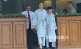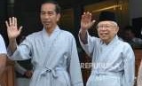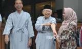 Calon presiden petahana Joko Widodo bersama calon wakil presiden KH. Ma'ruf Amin sebelum melakukan sesi pemeriksaan kesehatan di RSPAD Gatot Soebroto, Jakarta, Ahad (12/8). (FOTO : Republika/Edwin Dwi Putranto)