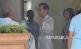 Calon presiden petahana Joko Widodo sebelum melakukan sesi pemeriksaan kesehatan di RSPAD Gatot Soebroto, Jakarta, Ahad (12/8). (FOTO : Republika/Edwin Dwi Putranto)