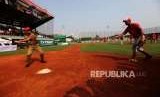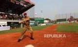 REPUBLIKA.CO.ID, JAKARTA -- Gubernur DKI Jakarta Anies Baswedan memukul bola baseball seusai peresmian venue baseball di GOR Pemuda Rawamangun, Jakarta, Senin (13/8).