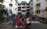 Warga beraktivitas di Rumah Susun Karang Anyar, Jakarta, Senin (13/8). (FOTO : Republika/Mahmud Muhyidin)