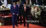 Presiden Joko Widodo didampingi Wakil Presiden Jusuf Kalla bersiap menyampaikan Pidato Kenegaraan saat Sidang Tahunan MPR Tahun 2018 di Kompleks Parlemen, Senayan, Jakarta, Kamis (16/8). (FOTO : Republika/Prayogi)