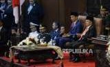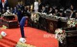 Presiden Joko Widodo memberikan salam kepada pimpinan MPR sebelum menyampaikan pidato kenegaraan saat Sidang Tahunan MPR Tahun 2018 di Kompleks Parlemen, Senayan, Jakarta, Kamis (16/8). (FOTO : Republika/Prayogi)