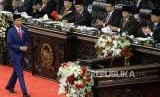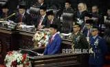 REPUBLIKA.CO.ID, JAKARTA -- Presiden Jokowi menyampaikan pidato kenegaraan dalam Sidang Tahunan MPR 2018 di Gedung Nusantara, Kompleks Parlemen Senayan, Jakarta, Kamis (16/8).