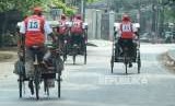Lomba balap becak diikuti oleh puluhan pengayuh becak di kota Bandung..