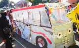 Replika bus karakter kartun kreasi warga saat mengikuti “arak-arakan” (karnaval tradisional) memperingati hari Kemerdekaan ke-73 Republik Indonesia di wilayah Kecamatan Pasirjambu, Kabupaten Bandung, Sabtu (18/8). (FOTO : Republika )