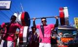 Potret sosial peserta “arak-arakan” (karnaval tradisional) memperingati HUT RI di wilayah Kecamatan Pasirjambu, Kabupaten Bandung, Sabtu (18/8). (FOTO : Republika )