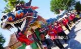 Warga menampilka atraksi tarian naga saat mengikuti “arak-arakan” (karnaval tradisional) memperingati hari Kemerdekaan ke-73 Republik Indonesia di wilayah Kecamatan Pasirjambu, Kabupaten Bandung, Sabtu (18/8). (FOTO : Republika )