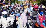 Suasana lalu lintas Jl Raya Pasirjmabu tampak macet total saat peserta “arak-arakan” (karnaval tradisional) melintas di wilayah Kecamatan Pasirjambu, Kabupaten Bandung, Sabtu (18/8). (FOTO : Republika )