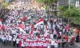 Ribuan peserta Long March #BukaDukungan berkumpul di kawasan M.H Thamrin, Jakarta Pusat, Minggu (19/8), Bukalapak mengadakan Long March #BukaDukungan yang diselenggarakan untuk memberikan dukungan kepada para peserta Asian Games 2018, khususnya atlet Indonesia. (FOTO : Dok Bukalapak)