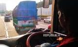 Truk pengangkut barang melintasi jalan tol JORR di kawasan TB Simatupang Jakarta Selata, Ahad (19/8). Selama perhelatan Asian Games berlangsung kendaraan truk berukuran besar dilarang melintasi tol dalam kota selama hampir 13 jam mulai dari pukul 06.00 hingga 19.00. (FOTO : Yogi Ardhi/Republika)