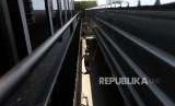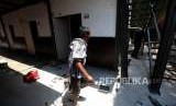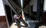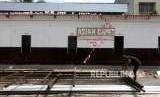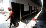 REPUBLIKA.CO.ID, JAKARTA -- Pekerja menyelesaikan pembangunan shelter Kampung Kunir di Kawasan Tamansari, Jakarta, Senin (20/8).