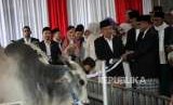 REPUBLIKA.CO.ID, JAKARTA -- Wakil Presiden (Wapres) Jusuf Kalla menyerahkan sapi kurban ke pengelola Hari Raya Kurban Masjid Istiqlal, Rabu (22/8). Penyerahan itu dilakukan usai JK melakukan Sholat Idul Adha di Masjid Istiqlal Jakarta, Rabu (22/8).