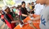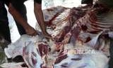REPUBLIKA.CO.ID, JAKARTA -- Petugas membagikan daging hewan kurban kepada warga di Masjid Cut Meutia, Menteng, Jakarta, Rabu (22/8).