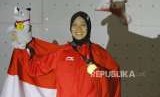 REPUBLIKA.CO.ID, PALEMBANG -- Tiga dari empat atlet cabang olahraga panjat tebing nomor women speed dan men speed mempersembahkan medali untuk Indonesia di Asian Games 2018. Aries Susanti Rahayu, Puji Lestari, dan Aspar Jaelolo masing-masing mempersembahkan medali emas, perak, dan perunggu.