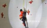 Perunggu Dari Kecepatan Putra. Pemanjat Dinding Indonesia Aspar (kiri) bertanding pada cabang panjat dinding nomor kecepatan putra Asian Games 2018 di Komplek Olahraga Jakabaring, Kamis (23/8) malam. (FOTO : Republika/ Wihdan)