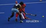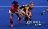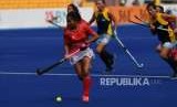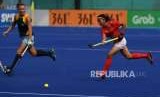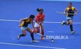 REPUBLIKA.CO.ID, JAKARTA -- Tim nasional hoki putri Indonesia meraih kemenangan 2-1 atas Kazakhstan pada pertandingan penyisihan Grup B hoki Asian Games 2018, yang dimainkan di Lapangan Hoki, Gelora Bung Karno, Jakarta, Kamis (23/8). Tim putri Indonesia saat ini menghuni peringkat ketiga di Grup B. Tertinggal tiga poin dari India