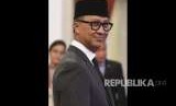 Agus Gumiwang Kartasasmita bersiap mengikuti upacara pelantikan dirinya menjadi Menteri Sosial di Istana Negara, Jakarta, Jumat (24/8). (FOTO : Antara/Hafidz Mubarak A)