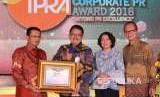 Direktur Bisnis Bank DKI, Antonius Widodo Mulyono (kedua kiri) menerima penghargaan Indonesia Corporate PR Award 2018 pada kategori Top 8 Popular Company in Banking Sector dari Presiden Komisaris Warta Ekonomi, Fadel Muhammad (kiri) di Jakarta, Jumat (24/08) malam. (FOTO : Dok Bank DKI )