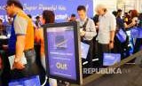 Nasabah BNI berada di gerai ATM BNI yang dihiasi ornamen Asian Games 2018 di Jakarta, Jumat (24/8). Sebagai Official Prestige Digital Banking Partner Asian Games 2018, BNI memberikan kemudahan transaksi seperti pembayaran melalui BNI saat pembelian tiket Asian Games 2018 secara online di blibli.com (FOTO : Hafidz Mubarak/Antara)