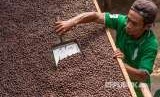 Kelompok Tani Karya Bakti II menjemur biji kopi robusta dengan metode Wine dari lahan organik perkebunan kopi rakyat lereng Gunung Kelir di Desa Brongkol, Jambu, Kabupaten Semarang, Jawa Tengah, Senin (27/8). Harga jual biji kopi organik itu mengalami kenaikan dari Rp22.500 menjadi Rp40.000 - Rp65.000 per kilogram (FOTO : Aji Styawan/Antara)