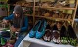 Perajin Kelompok Vokasi Sepatu Batik Gemawang menyelesaikan pembuatan sepatu batik di industri rumahan Sepatu Batik 'Afara', Desa Gemawang, Jambu, Kabupaten Semarang, Jawa Tengah, Senin (27/8). Sepatu batik hasil kerajinan kelompok vokasi setempat dipasarkan ke sejumlah wilayah di Jateng hingga Sulawesi seharga Rp150.000 - Rp200.000 per unit tergantung motif dan tingkat kesulitan pembuatannya (FOTO : Aji Styawan/Antara)