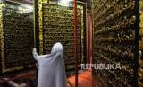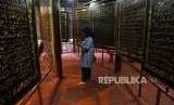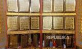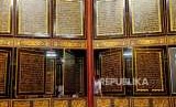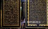 Wisata Religi Palembang. Warga melihat AlQuran kayu di Museum AlQuran Raksasa, Gandus, Palembang, Senin (27/8). (FOTO : Republika/ Wihdan)