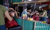 Suasana barbershop darurat di kamp pengungsi Rohingya Balukhali, Bangladesh. (FOTO : Altaf Qadri/AP)