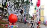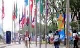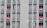 Bendera Negara Indonesia terpasang di Wisma Atlet, Kemayoran, Jakarta, Senin (3/9). (FOTO : Republika/Putra M. Akbar)