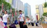 Sejumlah volunteer Asian Games 2018 beraktivitas di Wisma Atlet, Kemayoran, Jakarta, Senin (3/9). (FOTO : Republika/Putra M. Akbar)