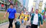 Sejumlah atlet mancanegara bersiap untuk pulang di Wisma Atlet, Kemayoran, Jakarta, Senin (3/9). (FOTO : Republika/Putra M. Akbar)