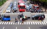 Gubernur DKI Jakarta Anies Baswedan meresmikan pelican crossing di Halte Bank Indonesia yang dianggap ramah untuk penumpang disabilitas, lansia dan ibu hamil yang ingin naik Transjakarta tanpa harus menaiki jembatan penyeberangan orang (JPO).