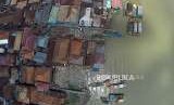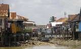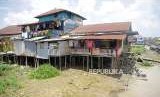 Perumahan warga di sekitar aliran Sungai Musi, Palembang, Sumatra Selatan. (FOTO : Wihdan Hidayat/Republika)